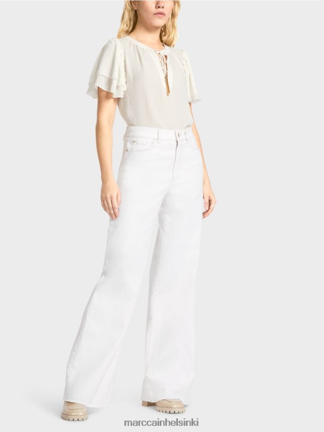 nämä viisitaskut WARRI Farkut ovat trendikkäässä suunnittelussa ja sopivat tiiviisti vyötäröllä ja leveä jalassa. Puuvilla -denim on pehmeä ja joustava, mutta siinä on silti ominainen irtotavara. Viileät yksityiskohdat: Kuljetetut helmet.